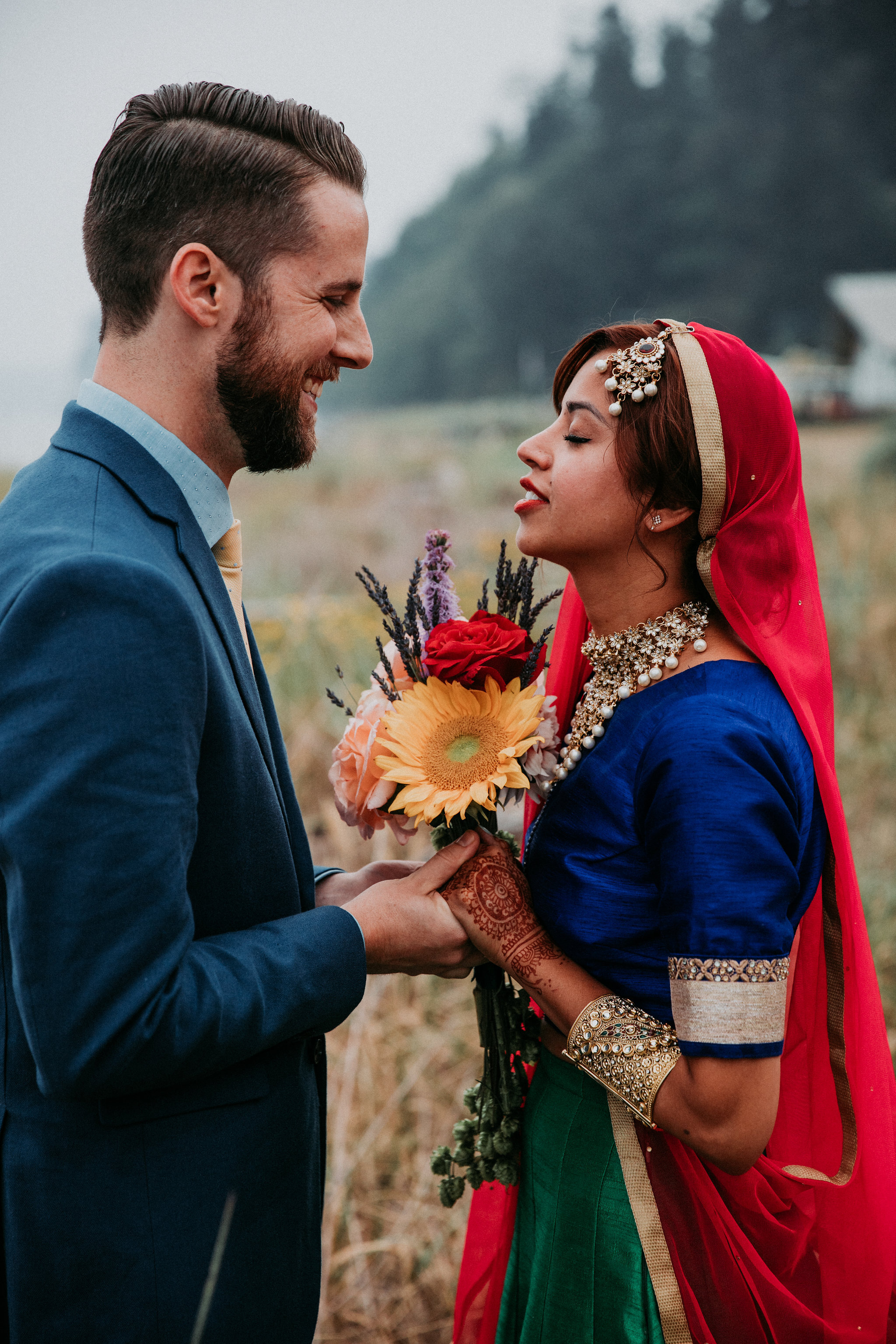 Brian’s a beer guy and Neha is a creative, and together they created the most beautiful elopement wedding! With just their close family, they spent the day on Whidbey Island where they celebrated with so much joy. Neha did an amazing job with the decorations incorporating hops into the florals! After a terrible fire season, they weren’t sure if we would be able to see the ocean or the cliffside, but we got lucky and they showed for a little bit! I loved every moment of this day. They were both so nice and down to earth!